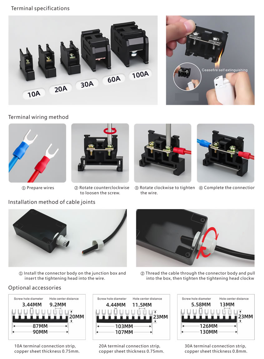 Terminal current: 10A、20A、30A、60A、100A