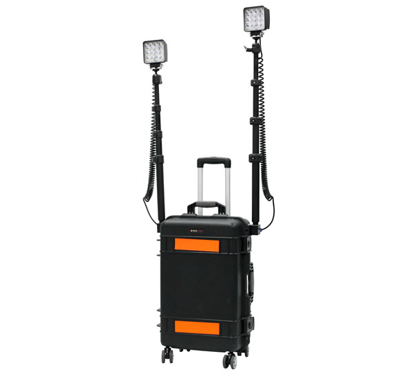 犀牛移动照明灯LIG2327的特点是有两个伸缩灯杆(每个可伸长至1.9米)和两个可360°旋转调节的关节云台。LIG2327可将灯杆、线缆和灯头均收纳在箱体内部,便于运输和贮存,使用时可方便快速的展开。