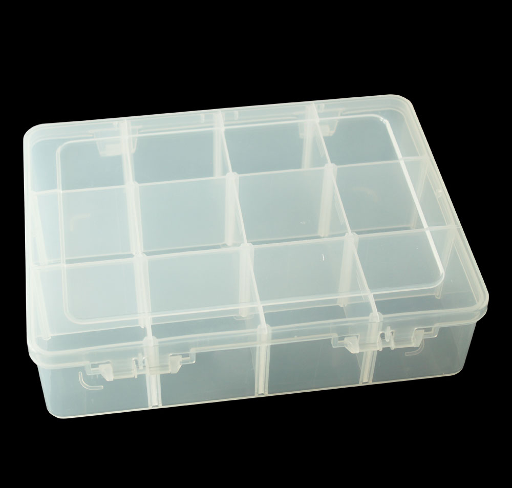 1) 材料:透明PP 2) 柔韧的铰链设计,易于打开与保存 3) 有可移动的间隔,大小组合可以不同 4) 折叠时可以节省空间的设计 5) 广泛用于电子元件,药丸,以及鱼钩 鱼饵的存储等行业